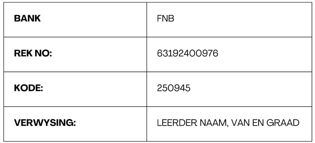 Hierdie nommers word gebruik vir alle kommunikasie van die naskool se kant af.